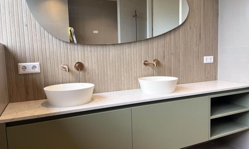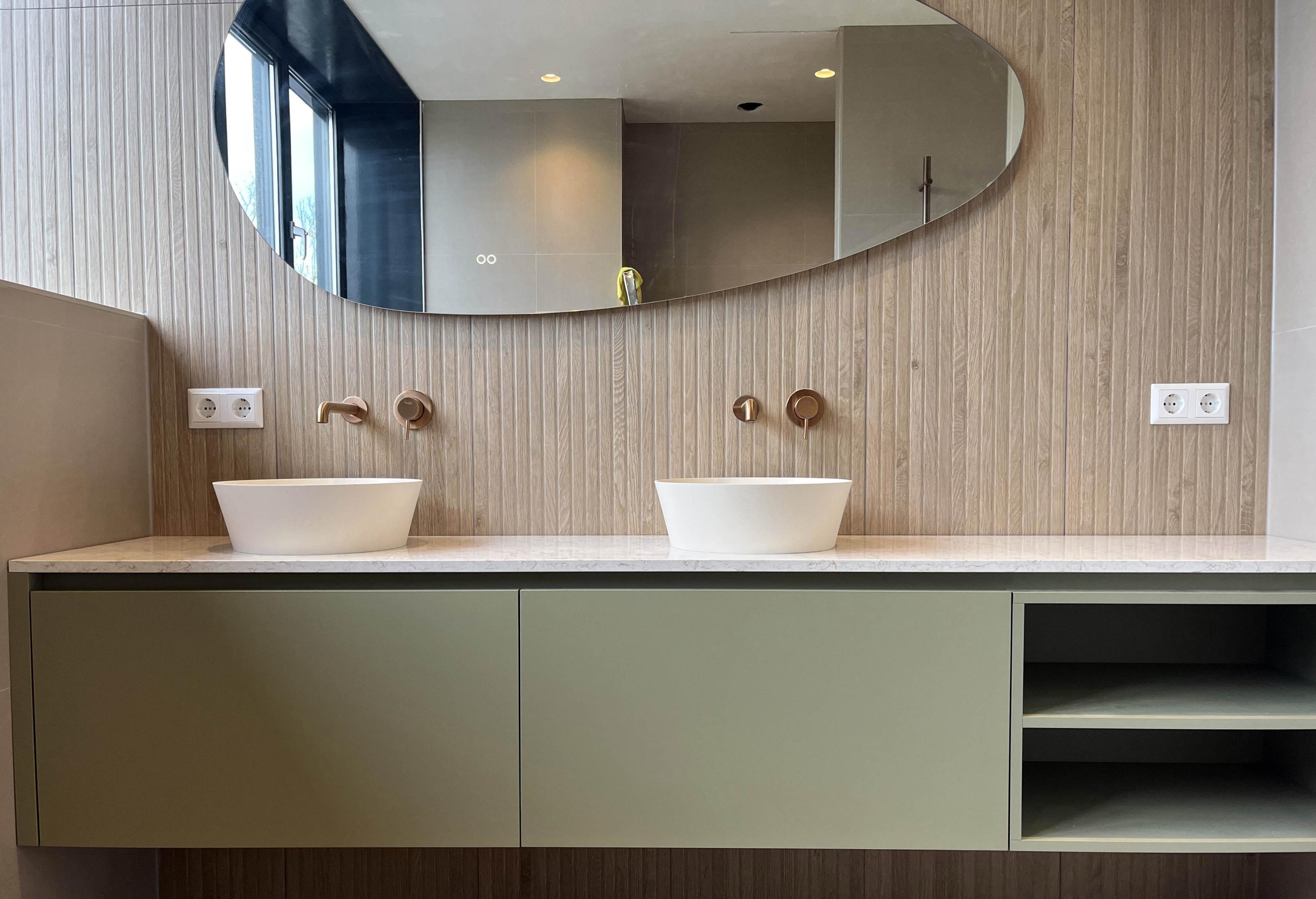 Creëer een badkamer die stijl, comfort en functionaliteit perfect combineert. Onze badkamermeubels op maat worden volledig afgestemd op uw ruimte, wensen en interieurstijl. Kies materialen, kleuren, indeling en afwerking, van stijlvolle wastafels en lades tot slimme opbergruimte en spiegeloplossingen.
