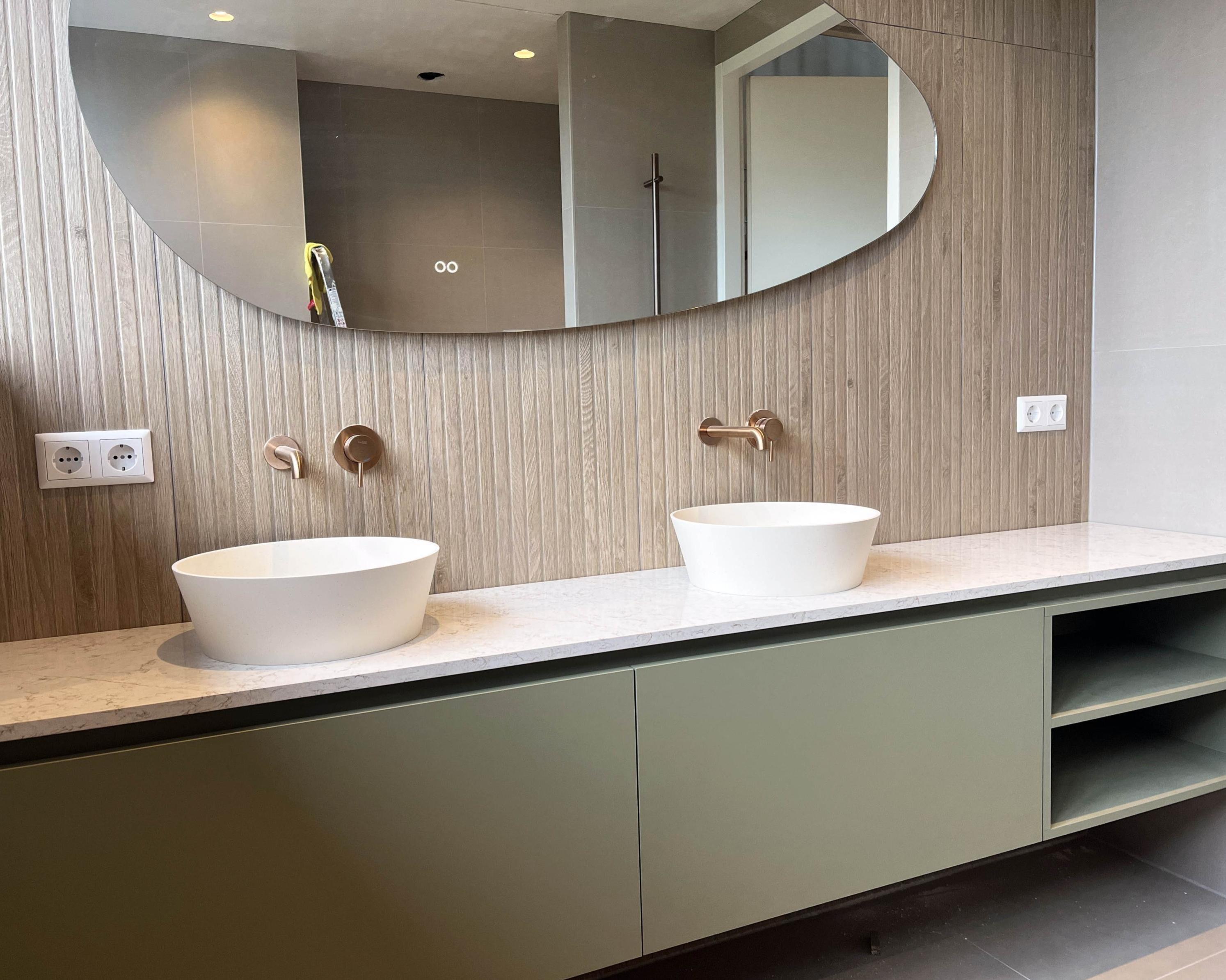Met vakmanschap en hoogwaardige materialen realiseren wij een meubel dat jarenlang meegaat en uw badkamer transformeert in een serene en georganiseerde ruimte. Elk detail – van soft-close lades tot subtiele verlichting – wordt zorgvuldig uitgevoerd, zodat uw badkamer zowel praktisch als een lust voor het oog is.